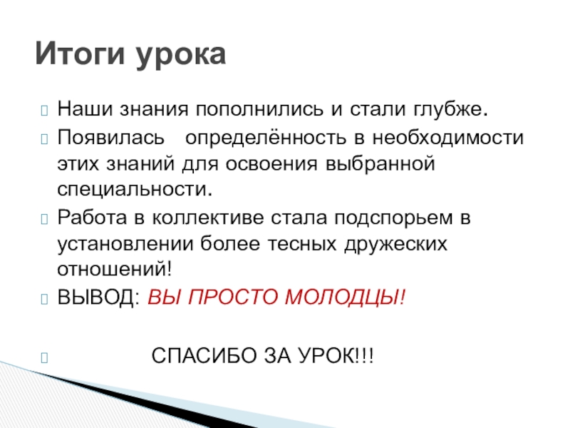 Итоги урока