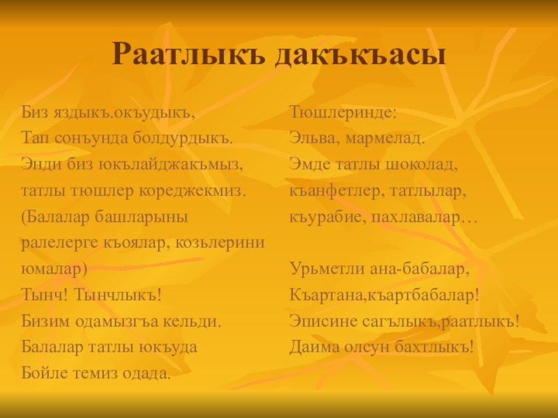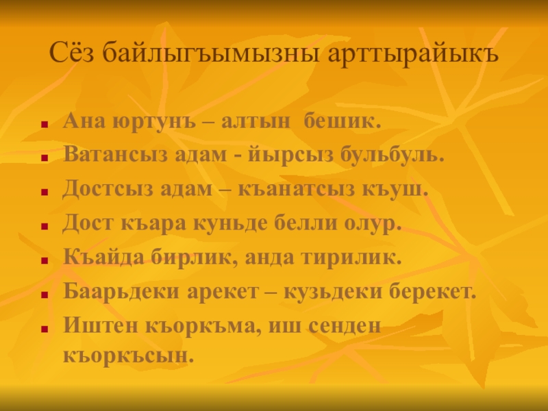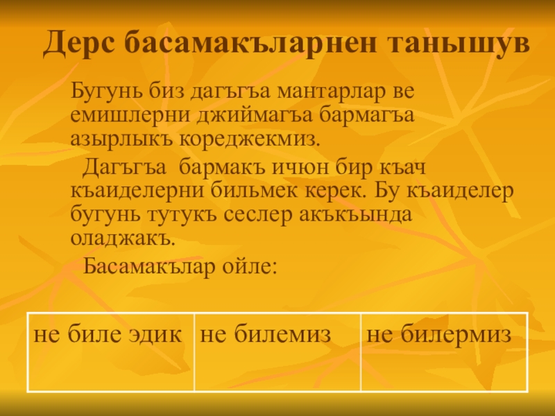 тутукъ сеслер акъкъында бильгилерини арттырмакъ;