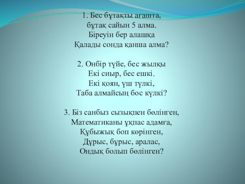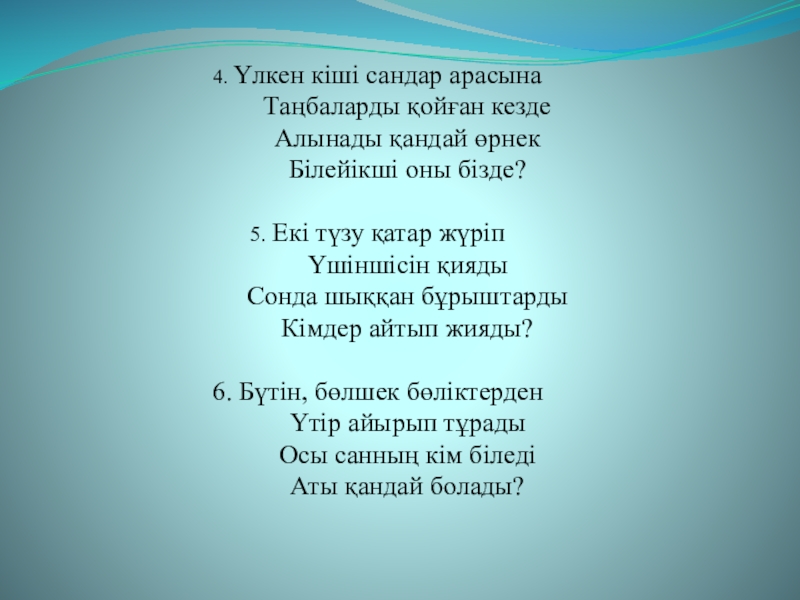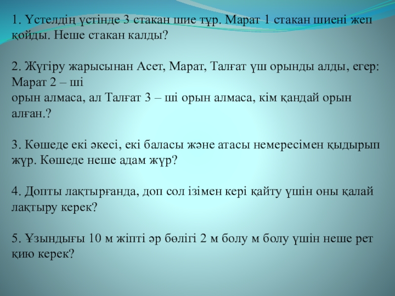 7. “Ойнайық та, ойланайық”. Логикалық есептер.