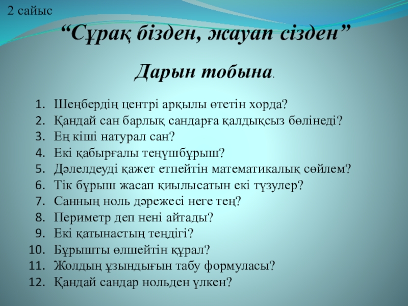 8. “Ойлан тап”. Жұмбақтар сайысы.