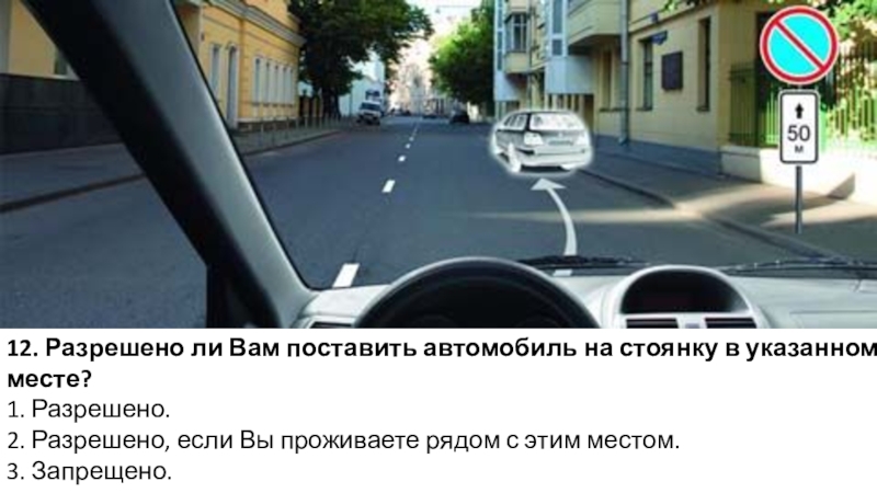 Слайд 4312. Разрешено ли Вам поставить автомобиль на стоянку в указанном месте?