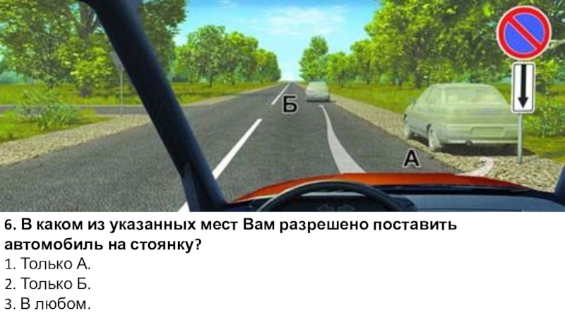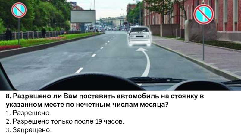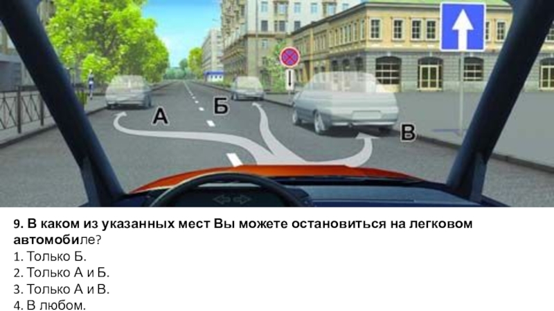 Слайд 1911. В каком из указанных мест Вы можете поставить автомобиль на