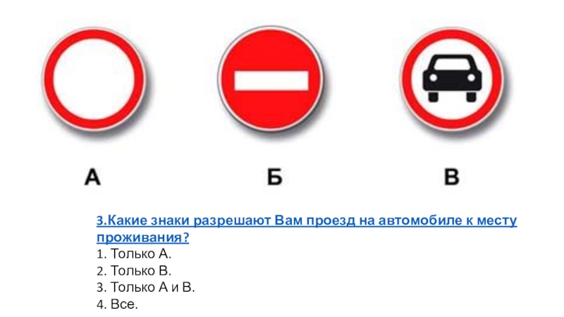 Слайд 113.Какие знаки разрешают Вам проезд на автомобиле к месту проживания?