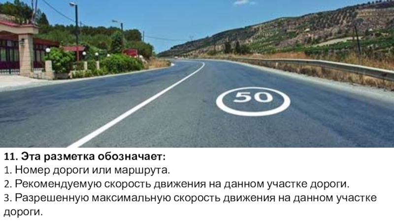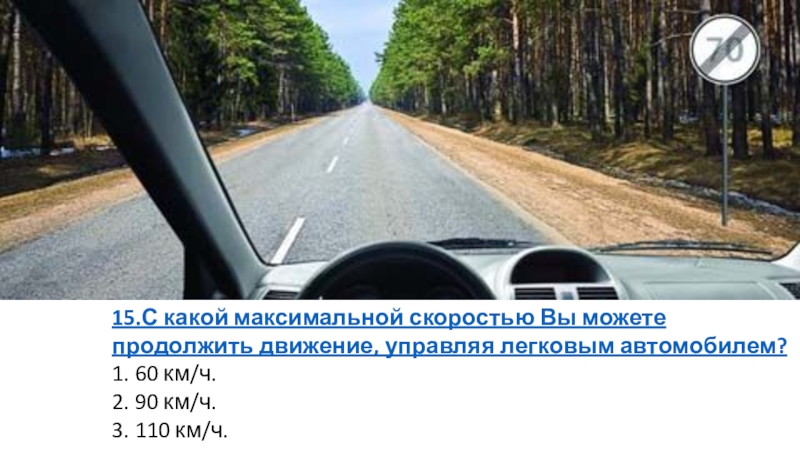 Слайд 2315.С какой максимальной скоростью Вы можете продолжить движение, управляя легковым автомобилем?