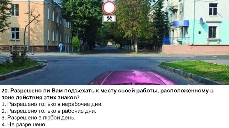 Слайд 5120. Разрешено ли Вам подъехать к месту своей работы, расположенному в