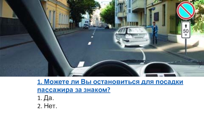 Слайд 91. Можете ли Вы остановиться для посадки пассажира за знаком?