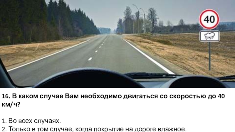 Слайд 4716. В каком случае Вам необходимо двигаться со скоростью до 40