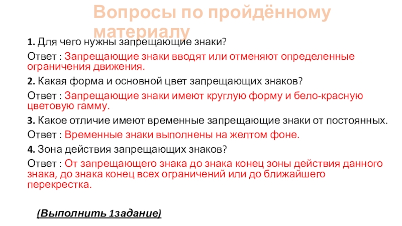 Ответ : Запрещающие знаки имеют круглую форму и бело-красную цветовую гамму.