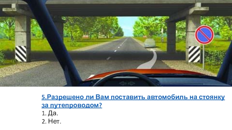 Слайд 135.Разрешено ли Вам поставить автомобиль на стоянку за путепроводом?
