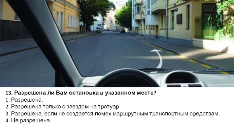 Слайд 4413. Разрешена ли Вам остановка в указанном месте?