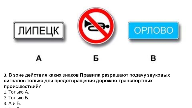 Слайд 343. В зоне действия каких знаков Правила разрешают подачу звуковых сигналов