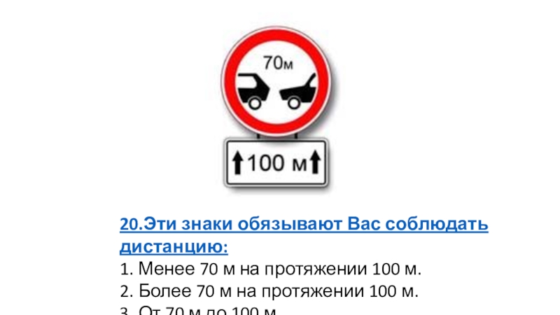 Слайд 2820.Эти знаки обязывают Вас соблюдать дистанцию: