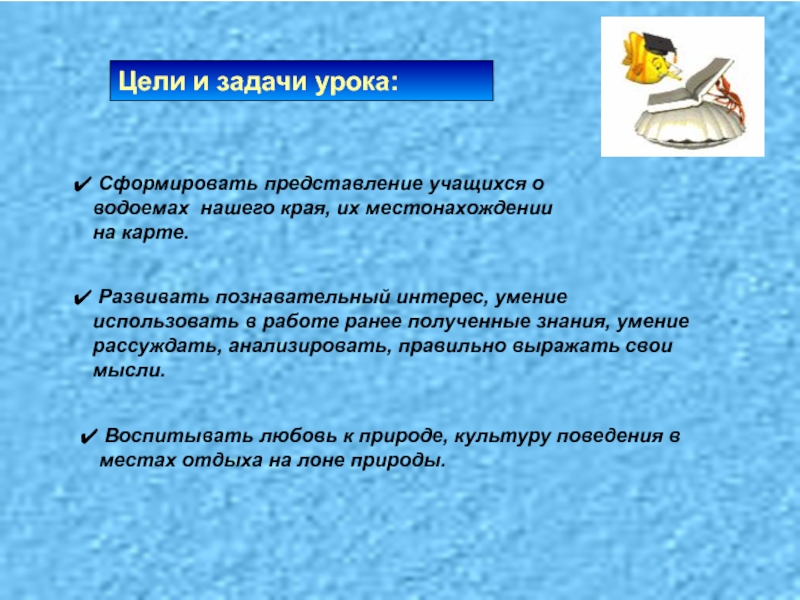 Воспитывать любовь к природе, культуру поведения в местах отдыха на лоне природы.