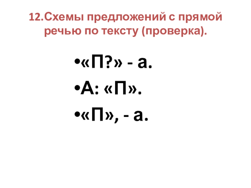 Слайд 2012.Схемы предложений с прямой речью по тексту (проверка).