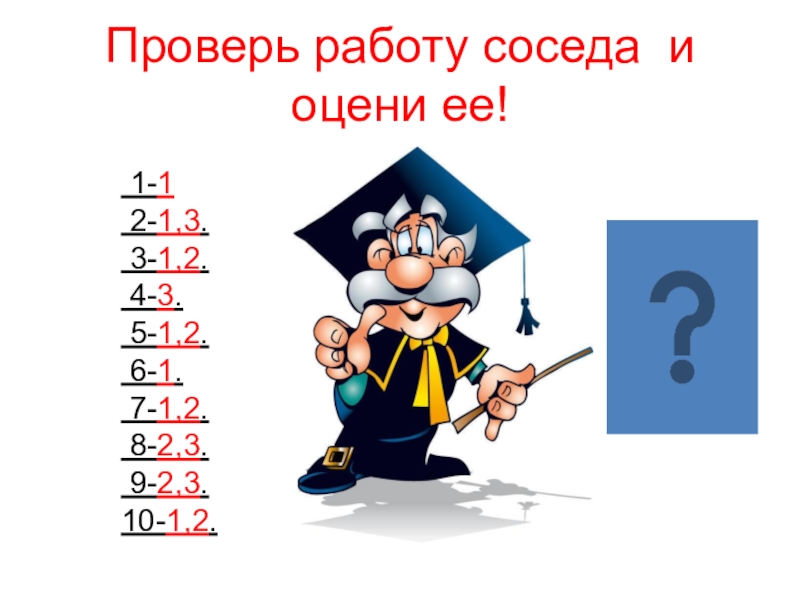 Слайд 34Проверь работу соседа и оцени ее!