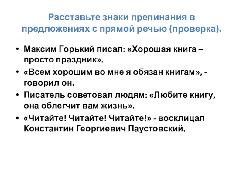 Слайд 13Расставьте знаки препинания в предложениях с прямой речью (проверка).