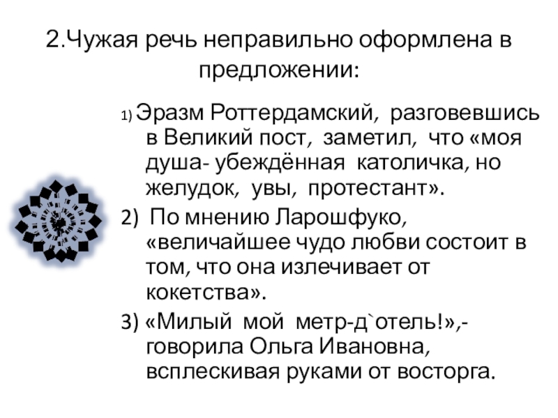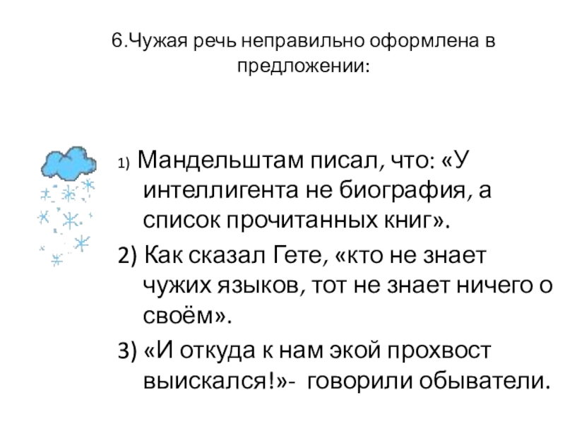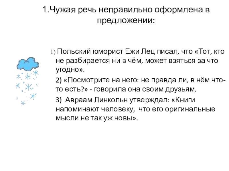 Слайд 274.Чужая речь неправильно оформлена