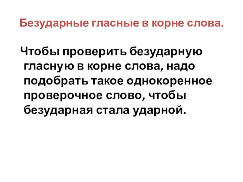 Слайд 18Безударные гласные в корне слова.
