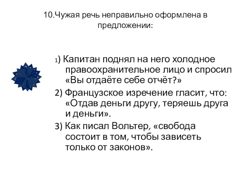 Слайд 263.Чужая речь неправильно оформлена в предложении