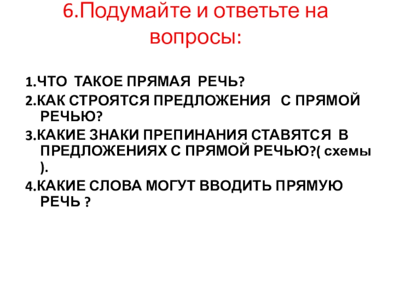 4.КАКИЕ СЛОВА МОГУТ ВВОДИТЬ ПРЯМУЮ РЕЧЬ ?