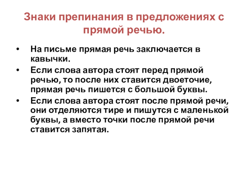 Слайд 9Знаки препинания в предложениях с прямой речью.