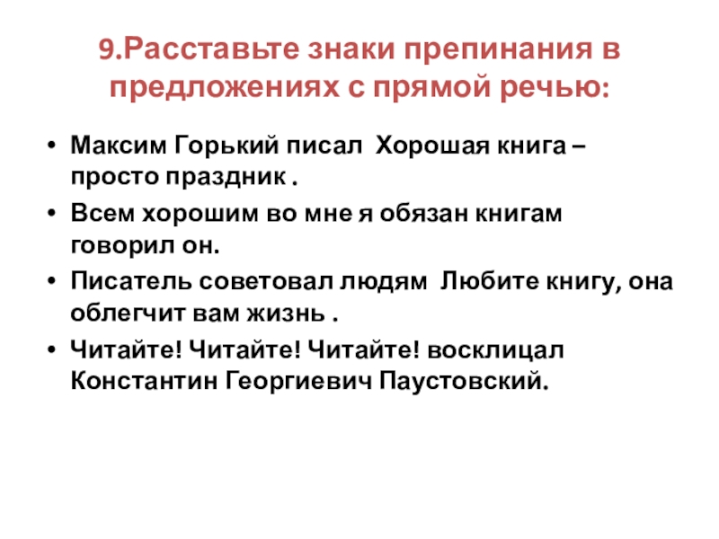 Слайд 129.Расставьте знаки препинания в предложениях с прямой речью: