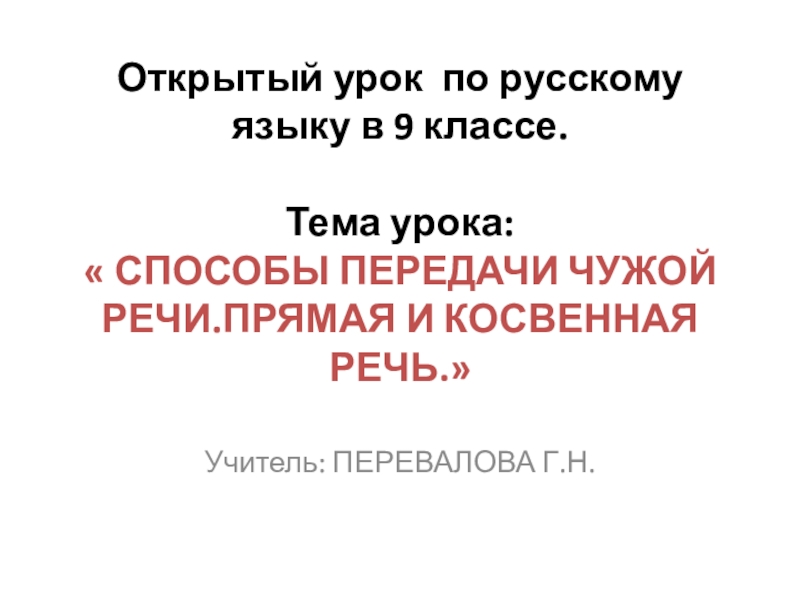 Слайд 2Открытый урок по русскому языку в 9 классе.