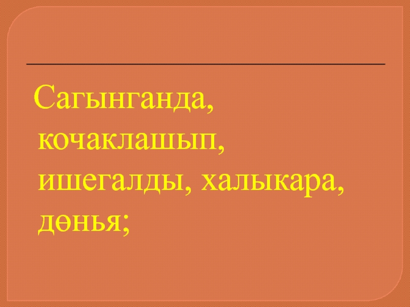 Слайд 4 Сагынганда, кочаклашып, ишегалды, халыкара, дөнья;