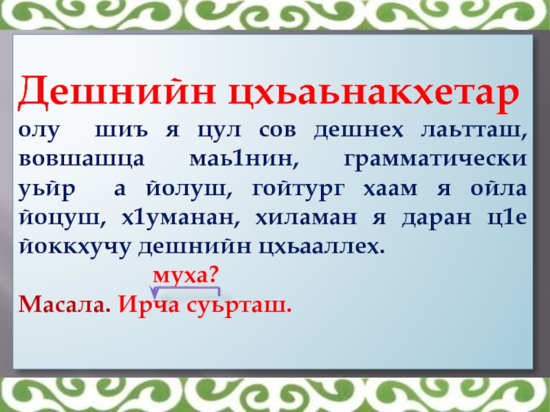 дозуш долчу даше цхьа а форма т1е ца оьцуьйту. /маь1ница /