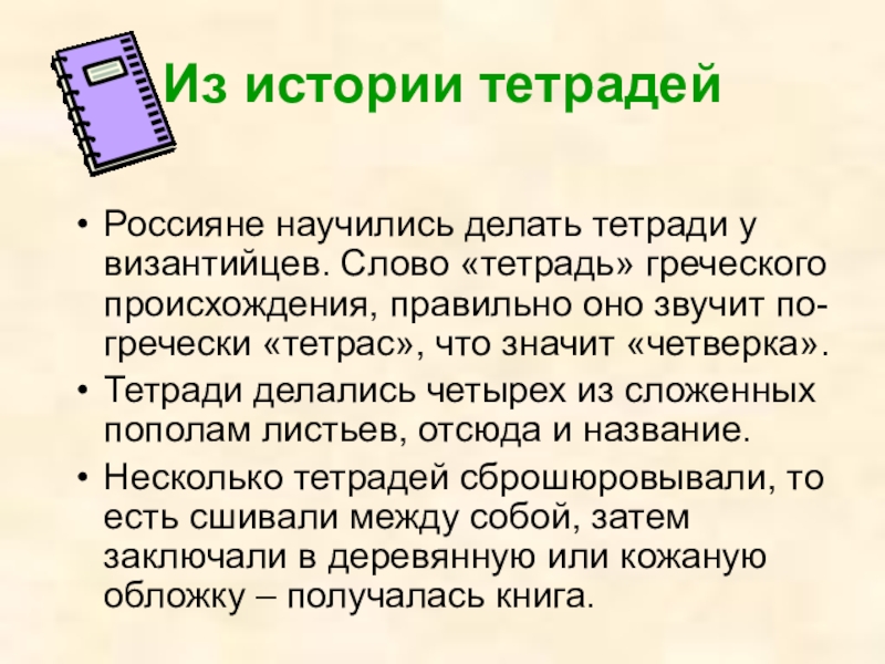 Россияне научились делать тетради у византийцев. Слово «тетрадь» греческого