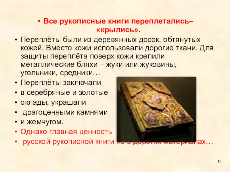 Слайд 11Все рукописные книги переплетались– «крылись».