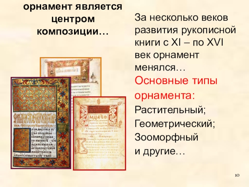 Слайд 10За несколько веков развития рукописной книги с XI – по XVI