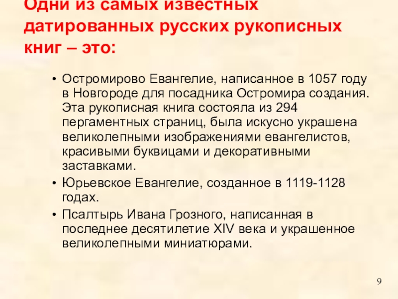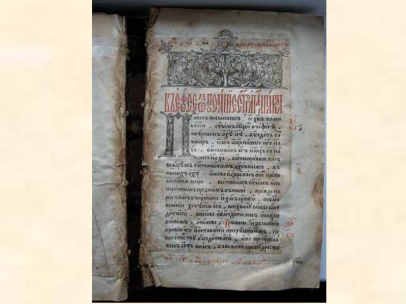 Слайд 9Остромирово Евангелие, написанное в 1057 году в Новгороде для посадника Остромира