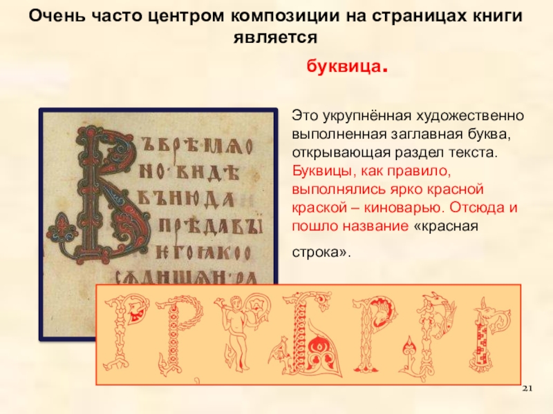 Слайд 21Это укрупнённая художественно выполненная заглавная буква, открывающая раздел текста.