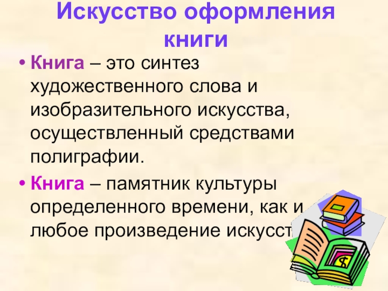 Книга – памятник культуры определенного времени, как и любое произведение искусства.