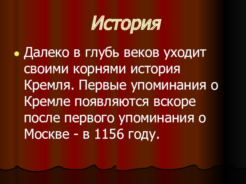 Далеко в глубь веков уходит своими корнями история Кремля. Первые упоминания