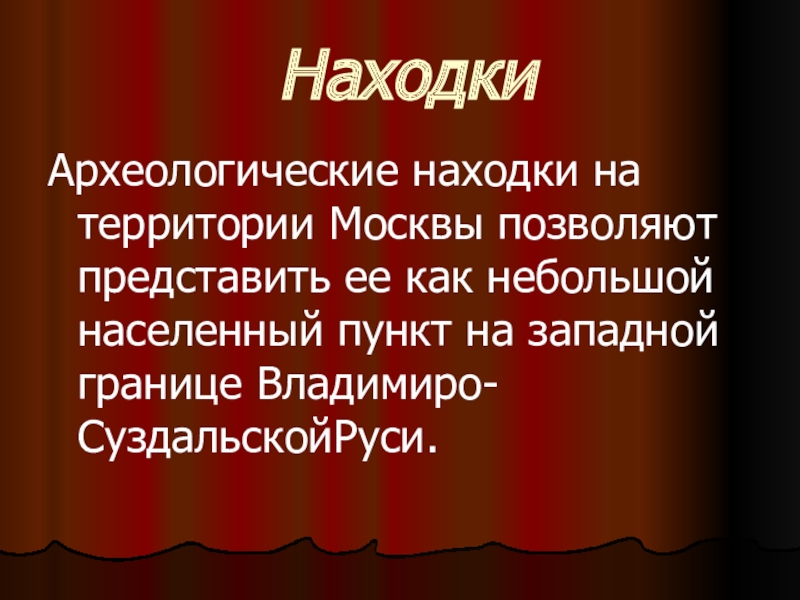 Археологические находки на территории Москвы позволяют представить ее как небольшой населенный