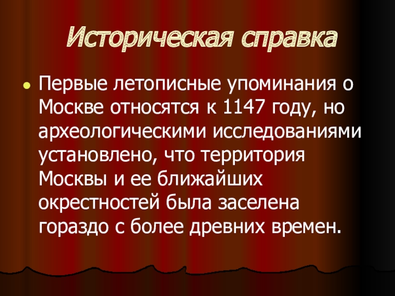 Первые летописные упоминания о Москве относятся к 1147 году, но