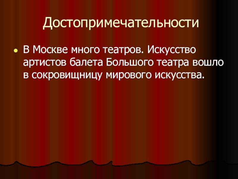 В Москве много театров. Искусство артистов балета Большого театра вошло в