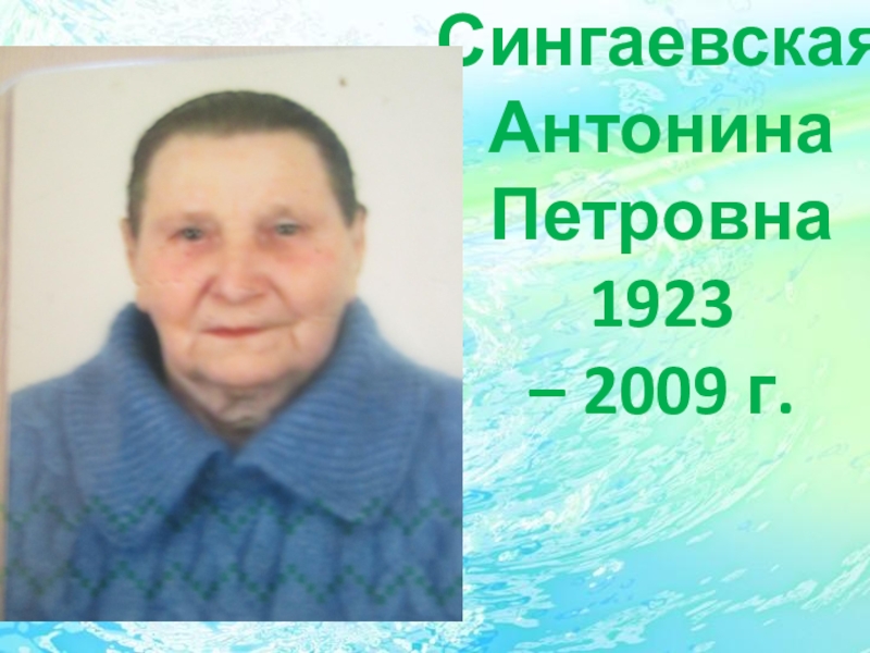 Слайд 26Сингаевская Антонина Петровна 1923 – 2009 г.