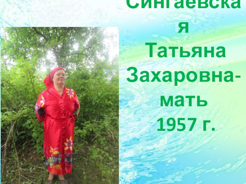 Слайд 15Сингаевская Татьяна Захаровна-мать 1957 г.