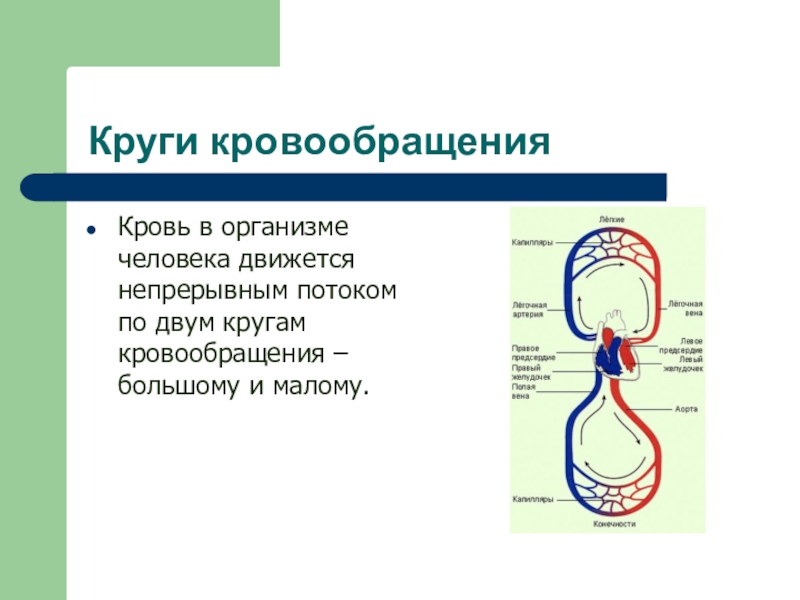 Кровь в организме человека движется непрерывным потоком по двум кругам