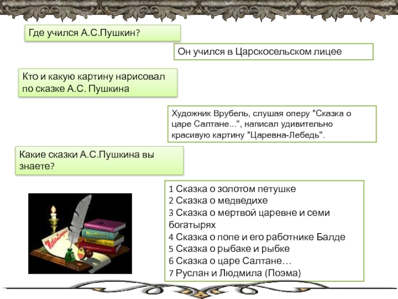 Какие сказки А.С.Пушкина вы знаете?