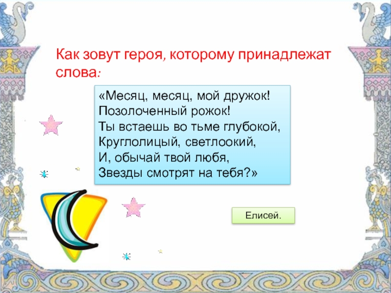 Как зовут героя, которому принадлежат слова: