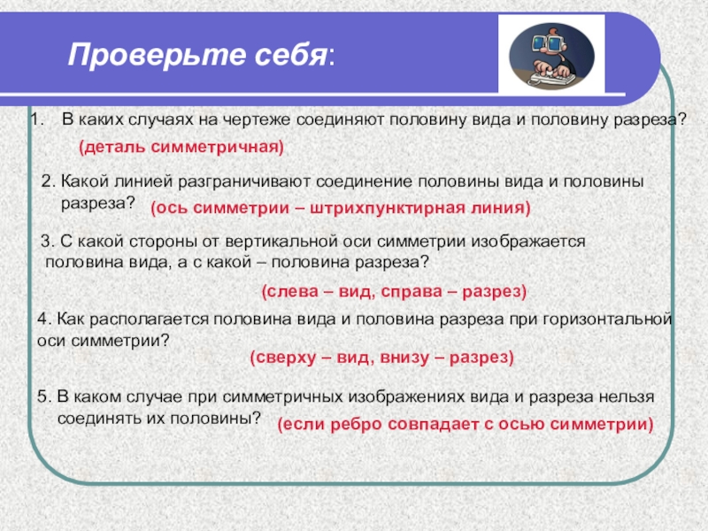5. В каком случае при симметричных изображениях вида и разреза нельзя