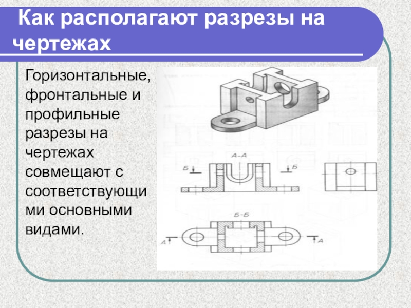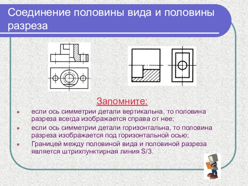 4. Как располагается половина вида и половина разреза при горизонтальной