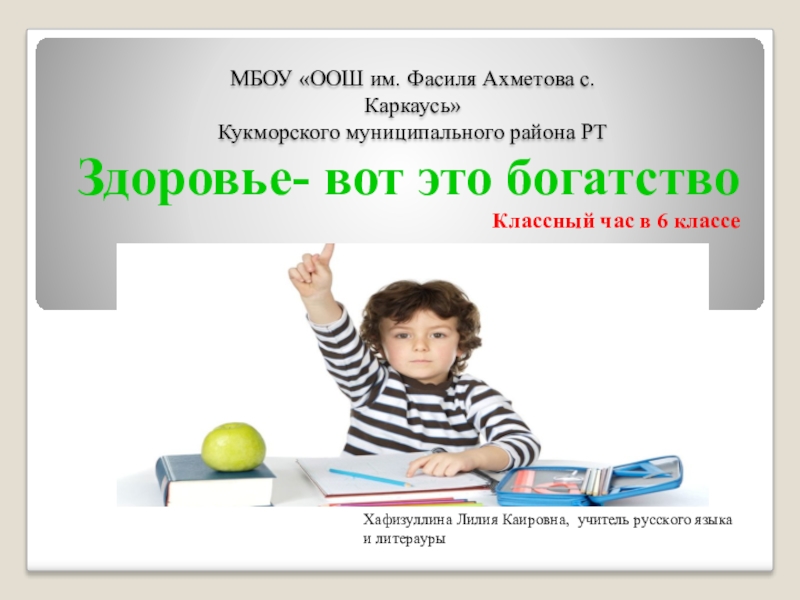 План- конспект классного часа «Здоровье- вот это богатство!»