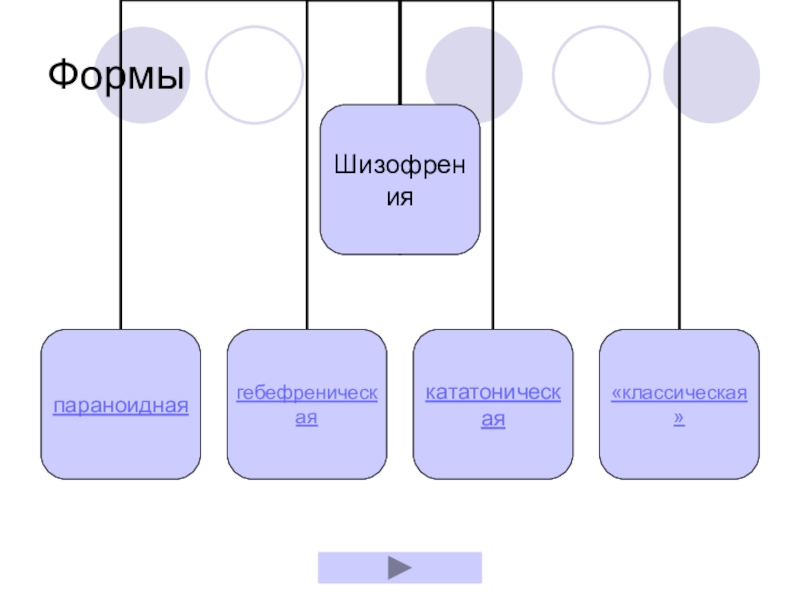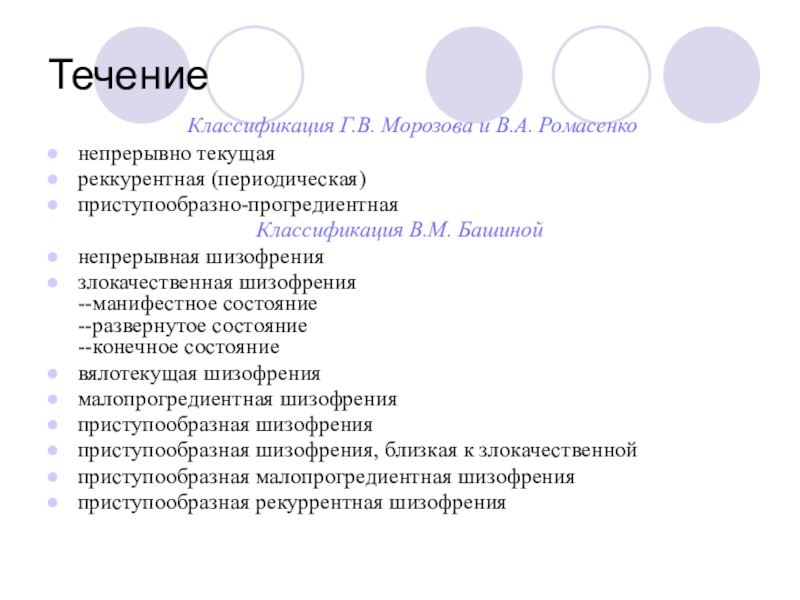 «раннее слабоумие» или группа шизофрений. К трем первоначально описанным Крепелином типам шизофрении он добавил четвертую, простую форму «классическую». Блейлер пытался описать шизофрению, исходя из «базисных» симптомов – нарушения мышления и эмоциональных изменений. Однако вскоре стало очевидно, что не все лица, по критериям Крепелина и Блейлера отнесенные к больным шизофренией, имеют расстройства, приобретающие хроническое течение или ведущие к деградации.