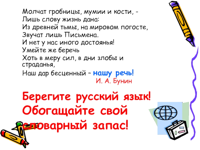 Это сайт презентаций, где можно хранить и обмениваться своими презентациями, докладами, проектами, шаблонами в формате PowerPoint с другими пользователями. Мы помогаем школьникам, студентам, учителям, преподавателям хранить и обмениваться учебными материалами.