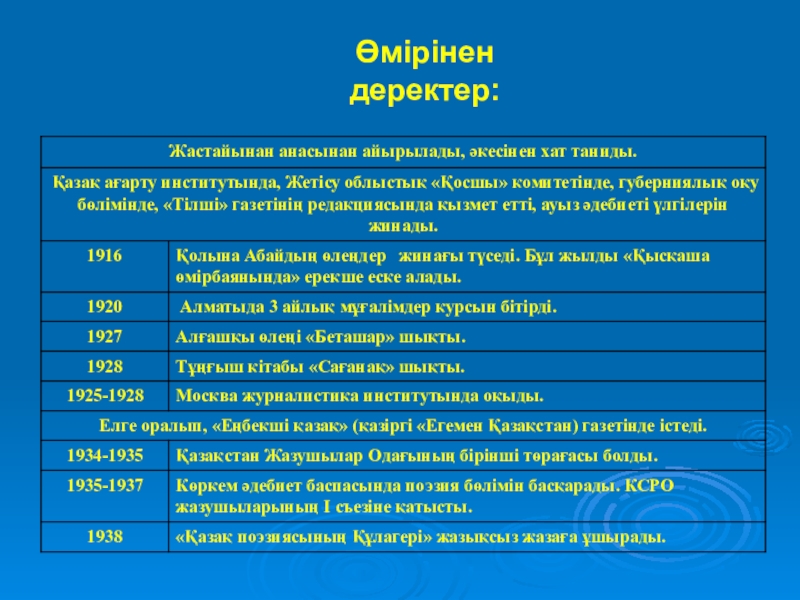 Слайд 6Өмірінен деректер: